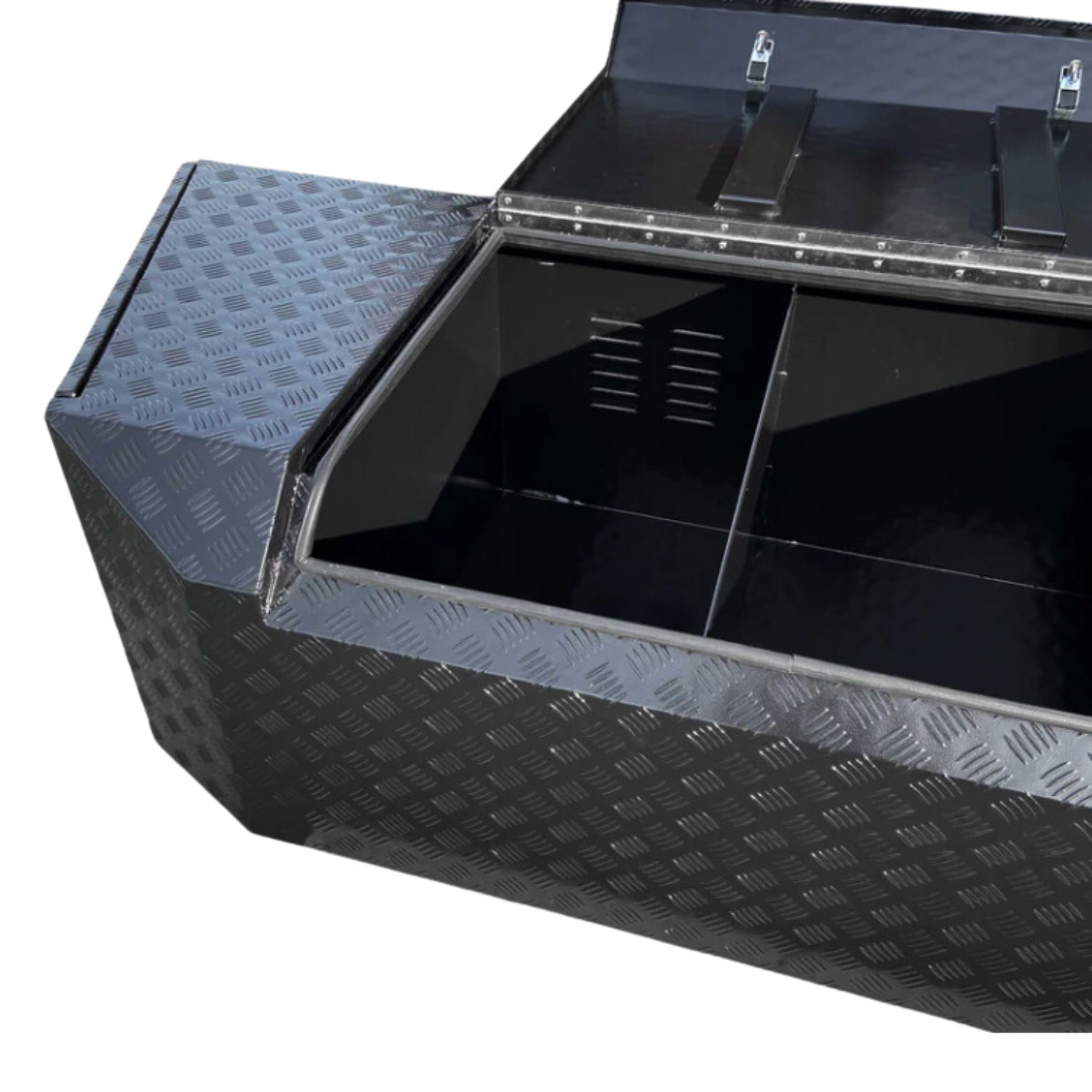 This storage box offers a secure and convenient way to store your camping gear, tools, and other essentials while on the road. Crafted with durability and convenience in mind, The box features three separate storage compartments, a smaller section perfectly suited to a Honda EU22 generator, a central vented gas bottle section that can easily fit 2 x 9kg gas bottles and a larger compartment that is open for you to store anything from your camping cook top to a 40L fridge slide.